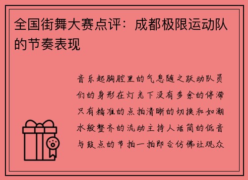 全国街舞大赛点评:成都极限运动队的节奏表现