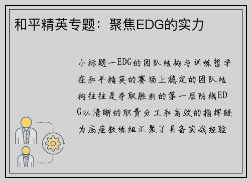 和平精英专题:聚焦EDG的实力