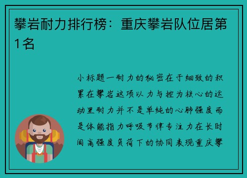 攀岩耐力排行榜:重庆攀岩队位居第1名