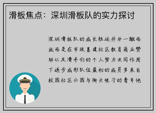 滑板焦点:深圳滑板队的实力探讨