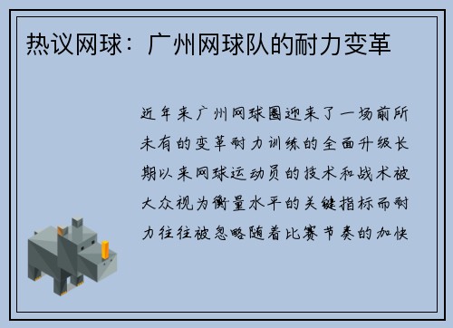 热议网球:广州网球队的耐力变革