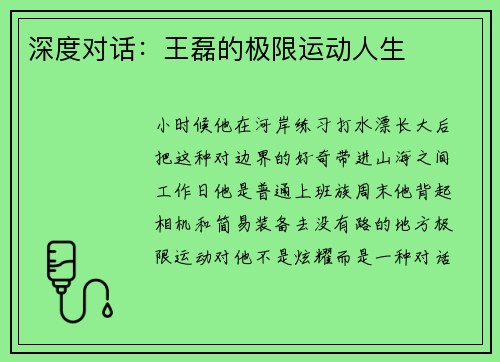 深度对话:王磊的极限运动人生
