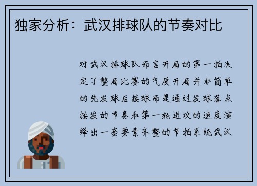 独家分析:武汉排球队的节奏对比