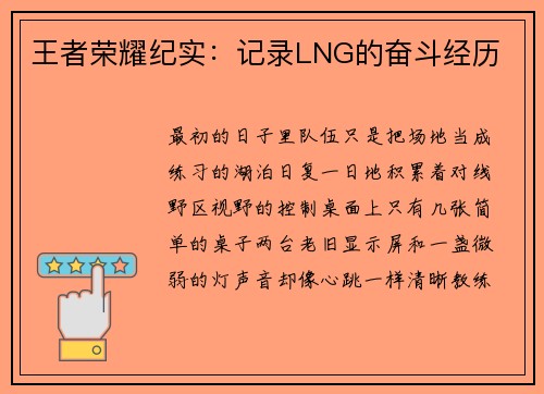 王者荣耀纪实:记录LNG的奋斗经历